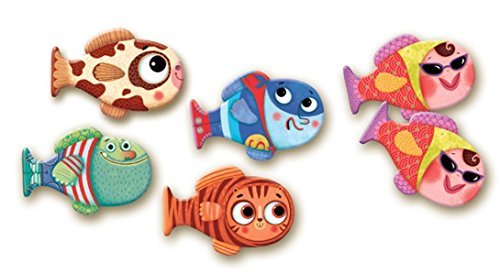 Match the pairs of colorful fish to win the game.;30 pieces, Size of pieces 7.5 x 5 cm;Age 3+;1 or more players.