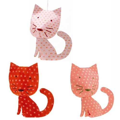 Beautiful and easy to assemble, hanging paper decorations add cheer and color to any space;Featherweight decorations float and spin with changing air currents;These delicate flowers were designed in France by Cecile Gambini;Unique room d?cor that can be enjoyed by all ages;Kitty sizes varies from 4.7 high x 4 wide to 6.5 wide x 5.1 high