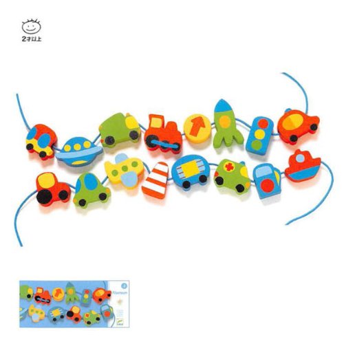 DJECO ジェコ Pre-School-Toys プレスクールトイ 16 beads vehicles + 2 laces ビーズ ビークル DJ06169