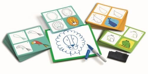 お手本の順番通り同じように描けるかな?形の認識、集中力や忍耐力が養われます。