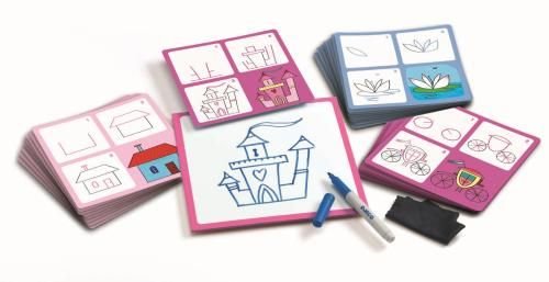 お手本の順番通り同じように描けるかな?形の認識、集中力や忍耐力が養われます。