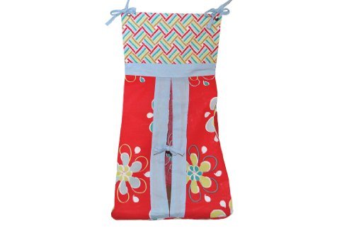 Made of 100% Cotton;Ties Easily to Changing Table and holds Serveral Diapers;Coordinates with Red Graphic Floral set by DK Leigh;Keeps Diapers Concealed yet close at hand;Easy Front Opening