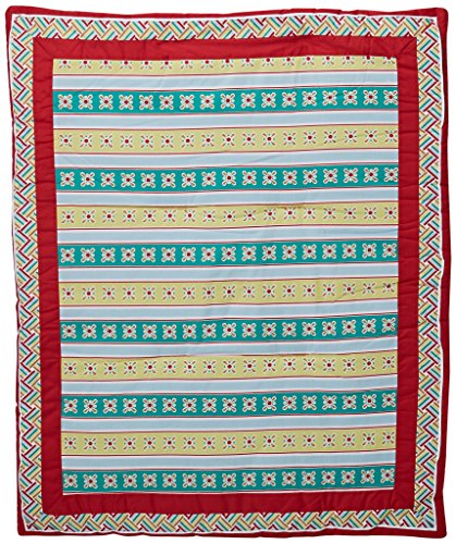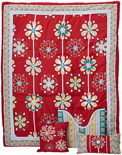 Darling Original Design: Get a designer look for a fraction of baby boutique prices! This cute nursery bedding ensemble for girls features a floral pattern in vibrant red, teal, lime & white.;5 Pieces for a Cohesive Look: Comes with a gorgeous crib quilt, fitted sheet, crib skirt & 2 decorative embroidered pillows. Creates a stylish, coordinated look in baby's room.;Stunning Embroidered Accents: While other brands just feature simple prints, this set has a variety of embroidered details, giving you a true high-end look without the high cost.;Durable Cotton is Soft on Baby's Skin: Crafted from 100% cotton, a breathable natural fabric that helps baby stay cool in the summer & warm in the winter. Gets softer with each wash.