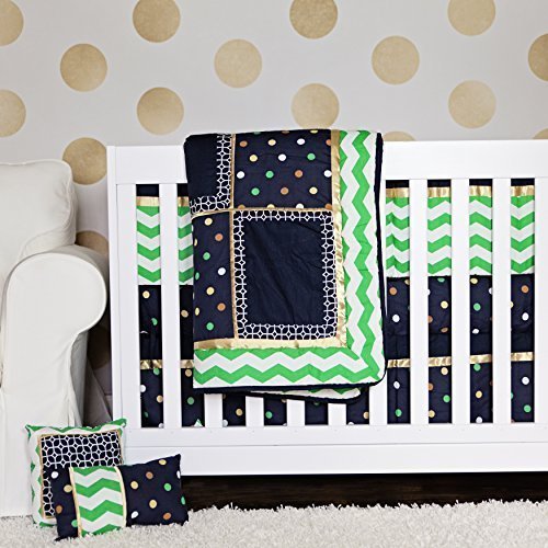 DK Leigh 10 Piece Crib Bedding Set for Boy, Green/Navy/Gold Chevron