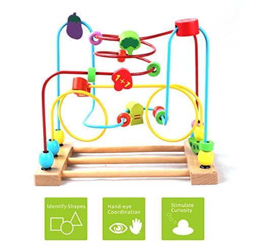 Brightly Colored:?Inspiring?kid's interest;For Ages above 18 Months, Play&Learn: Develop flexibility of the fingers;hand-eye coordination;cognitive ability and logical thinking ability.Parent can play with kids and teach them simple arithmetic,vegetables,colors and shape, Environmental&Harmless?: Natural &High Quality wood, Non-toxic paint, safe to children;No assembly required, no pieces will come out, Great gift for kids: Best choice as kids' birthday/Christmas gift.It is a good parent-child game, What You Get: 1*BATTOP Wooden Bead Roller Coaster, 1*instruction, 12 months limited warranty and professional and friendly customer service