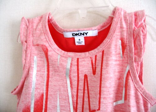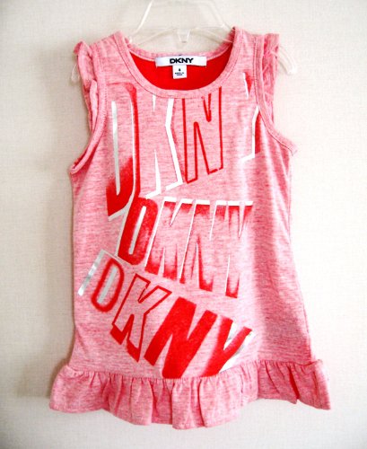 DKNY(ダナキャラン)Toddler & Little Girl's Printed Ruffle Tank Top/Red ガールズ プリントラッフル タンクトップ レッド (6T) (並行輸入品)