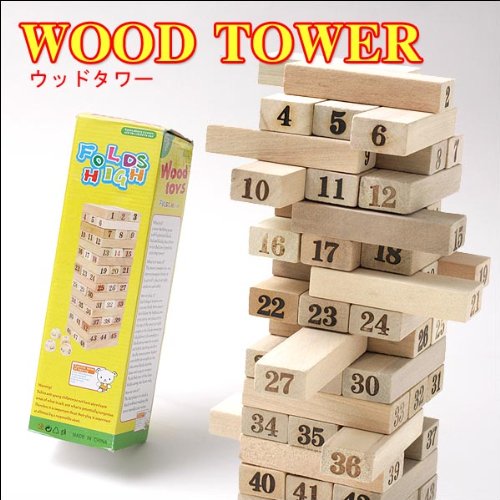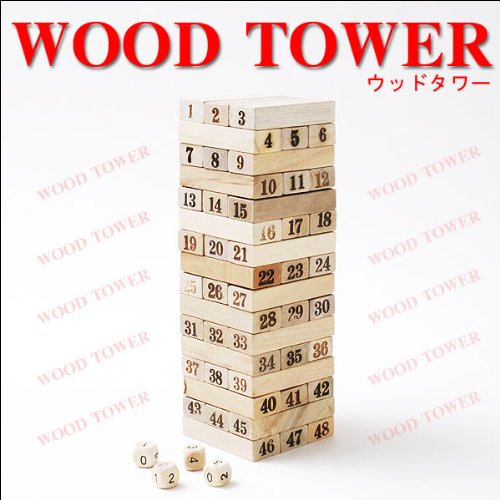【知育玩具】遊び方は無限大!?高耐久性で安全!創造ファミリーゲーム☆ウッドタワー/48PCS