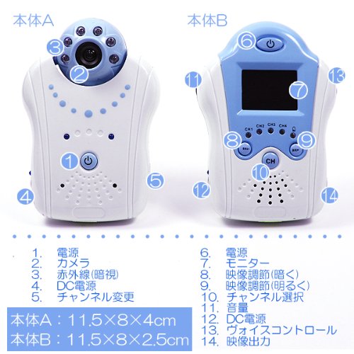 大切な赤ちゃんも見守る1台★TFTモニターで超綺麗!!ワイヤレスベビーカメラ ブルー ピンク
