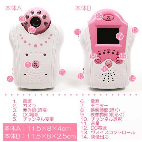 大切な赤ちゃんも見守る1台★TFTモニターで超綺麗!!ワイヤレスベビーカメラ ブルー ピンク (番号:1zP / 商品内訳:ピンク 1点)