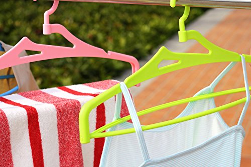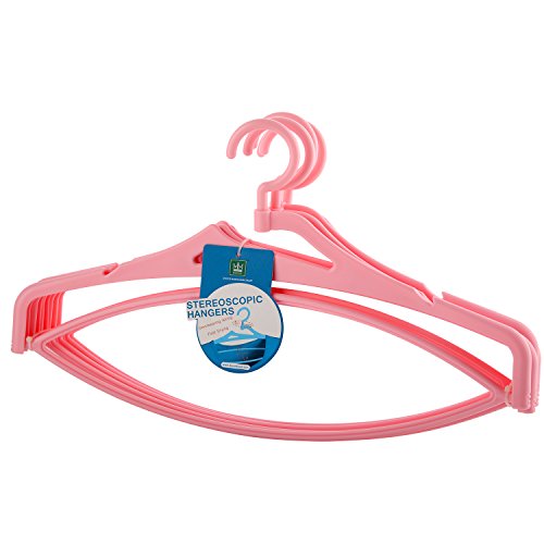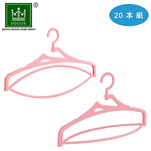 DOCCIS 上品な立体物干し 強化バージョンアップ版 固めで耐久 360°回転吊り輪付き バスタオルハンガー 凹槽付きで滑り止めです (20本組,ピンク)