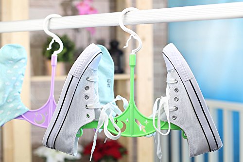 DOCCIS 高級多用途物干し 子供用 スニーカー物干し 360度回転できるフック シューズハンガー おしゃれ 二重フック 女性のインナー、キャミソール、吊りスカート、水着、パジャマのために設計されています (シューズハンガー,マルチカラー,3本組)