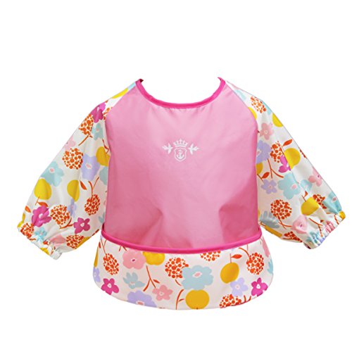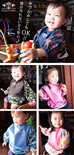 長袖お食事エプロン Sサイズ DORACO(ピンク x フラワー)