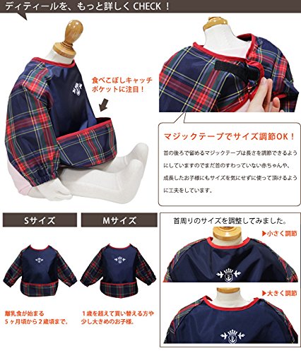 【ポケットの付いたお食事エプロン】 食べこぼしをキャッチしてくれる形状に仕上げました。 防水してくれるナイロン素材なので、洋服が汚れてしまうのを防いでくれます。 【お手入れ簡単!】 薄手ですぐ乾くから、 台所でサッと洗って干すだけの簡単手入れ♪ 【長袖だから、洋服が汚れるのを完全ガード】 手づかみが始まると、袖が汚れて大変! 外出時は着替えが無いので、 汚れを気にせず食べさせれるように長袖エプロンは必須になってきます。 【持ち運びに便利!】 この時期のお子様とのお出かけは、なんだかんだ荷物が多いですよね。 薄手でコンパクトになるから、鞄に入れてもジャマにならずにママも楽! 【Sサイズ】 首周り:28.5~37cm/着丈:28cm/身幅:35cm/袖丈:28cm/手首全周:15cm/ポケットの深さ:9cm/生産国:JAPAN/素材:ナイロン100%