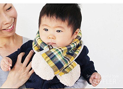 DORACO はじめてマフラー 優しい素材で安心設計 0歳~4歳 子供用(イエローチェック)