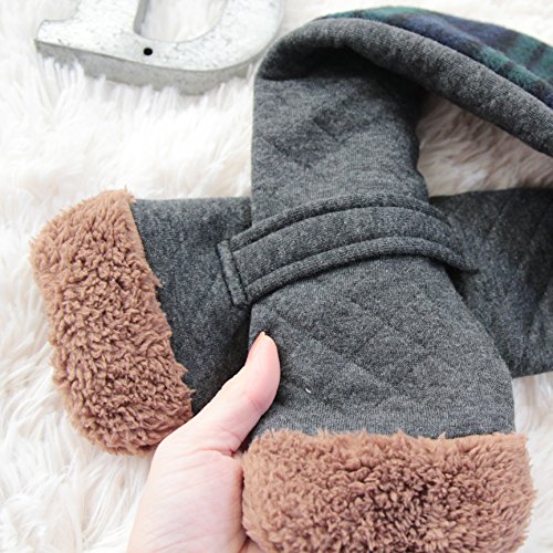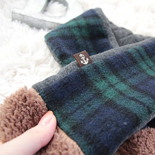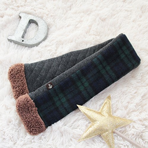 【Amazon 限定カラー!】 DORACO 防寒マフラー はじめてマフラー ネックウォーマーのようにお使いいただける 短めタイプ (チェックグリーン×チャコール)