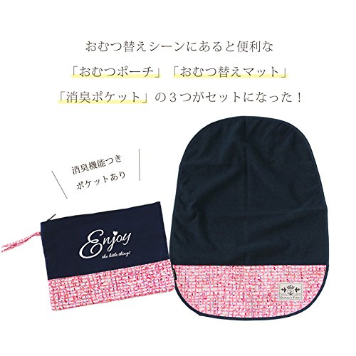 【数量限定!特別価格】DORACO 消臭ポケット付きオムツポーチ クラッチバッグ お揃いのおむつ替えマット付属おむつポーチ 安心の日本製 (ストロベリー)