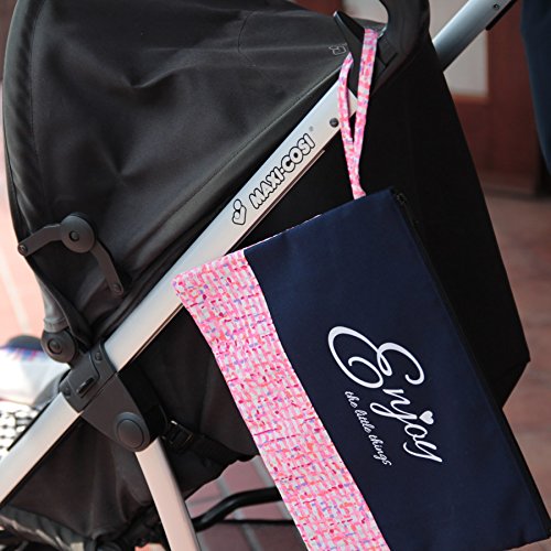 - 内側がナイロン素材の消臭機能付きポケットがある便利なオムツポーチ