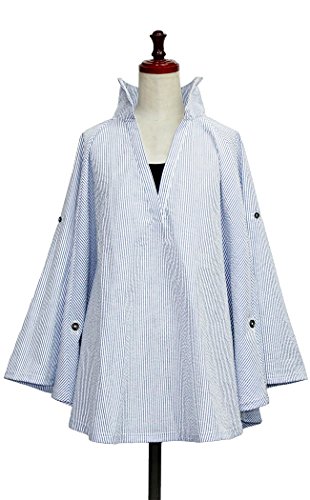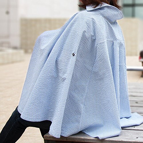 アウトレット特別価格! スキッパーシャツ風授乳ケープ 360度安心のポンチョ型ナーシングケープ(ブルーストライプ)