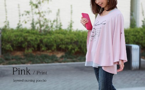 DORACO重ね着風 授乳ケープ 360度安心のポンチョ型ナーシングケープ(プリント×ピンク)