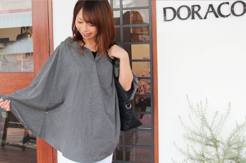 DORACOフード付き授乳ケープ 360度安心のポンチョ型ナーシングケープ(ダークグレー)