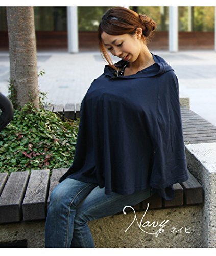 アウトレット値下げ価格! フード付き授乳ケープ☆ 360度安心のポンチョ型ナーシングケープ(巾着なし) (ネイビー)