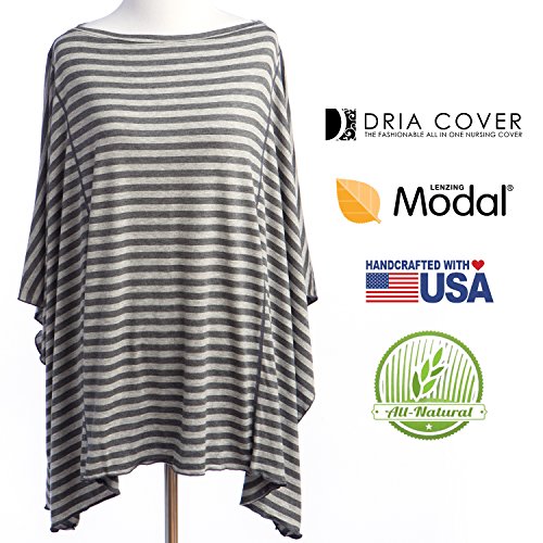 Nursing Covers by Dria 'The All-In-One Fashionable Nursing Cover, Stroller Cover, Car Seat Cover' - Made in USA from Premium Four Way Stretch and Breathable Modal Fabric (Oslo Style: Grey Stripe) by DRIA Cover