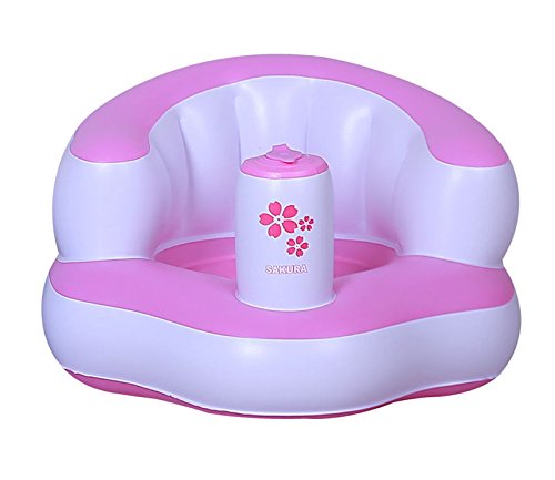 ふかふかベビーチェア 首がすわってから使えるバスチェア バスソファ ポンプアップ ヘッドレスト (ピンク)