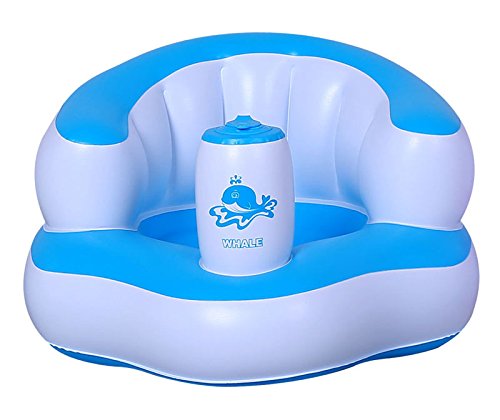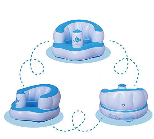 ふかふかベビーチェア 首がすわってから使えるバスチェア バスソファ ポンプアップ ヘッドレスト (ブルー)