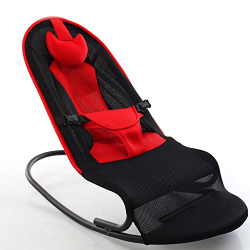新生児 バウンサーバランス ベビーチェア 3点式シートベルト専用 乳幼児用 揺れ椅子 背もたれ チェア (レッド)