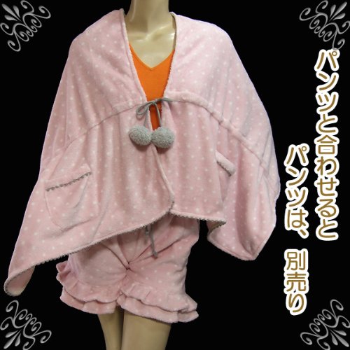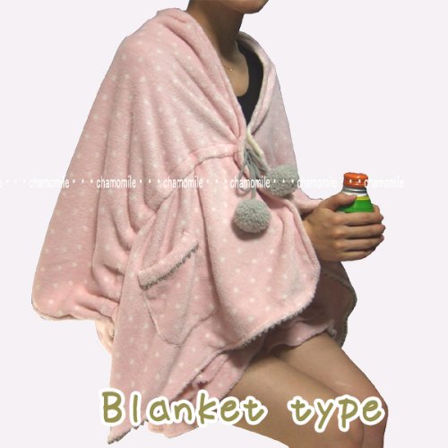 女子力UP ドット柄マイクロフリース 2wayショールブランケット-ピンク