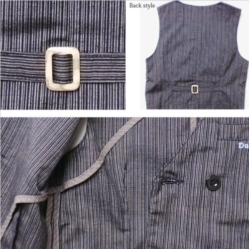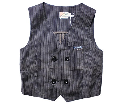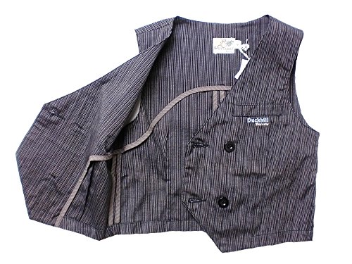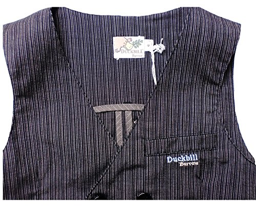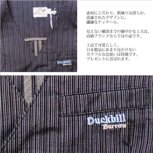 細いストライプ柄が可愛い正統派フォーマルタキシードです。ボタンなど、全体を同色でまとめ、ワンポイントで胸元のポケットにDuckbillの上品な刺繍があしらわれています。着るだけで小さな紳士のできあがりです♪背中はベルト風アレンジや緩やかな湾曲を描く切り替えしで、大人顔負け!内側の端処理も切りっぱなしではなく、違う生地で覆われており、ブランドのこだわりが細部まで感じられる仕上がりになっております。素材:コットン95%+スパンデックス5%。春夏秋物。