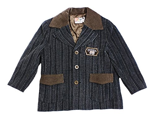 大人顔負けデザインのツイードジャケットです。紳士物同様の本格派仕上げ、ちょっとしたフォーマルからお出かけ着にまで幅広くお召しいただけます。裏地は光沢あるサテン生地。薄綿も入って初春、秋口に重宝する嬉しいフォーマルジャケット。左胸にはカントリー調のタグが付いています。ポケットはフタ付きのボックスポケットで、ちょっぴり背伸びお兄ちゃんを演出してくれます。秋冬物。素材:表地:ポリエステル100%、裏地:ポリエステル100%