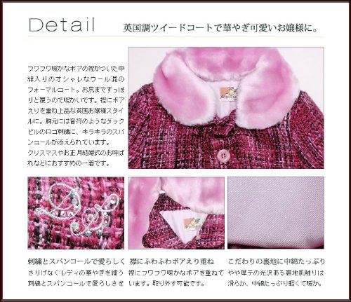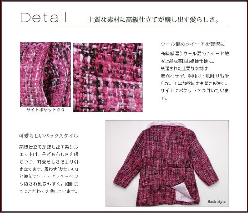 お嬢様テイストのファー付き中綿入りツイードフォーマルコート(濠Du)95cm