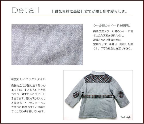 ママやお姉ちゃんもビックリ!のオシャレなフォーマルコートの登場です!ざっくりツイード編みの生地を使い、グレー&ブラウンのシックな色に、大人っぽいチェックを合わせました!胸には同生地で作られたかわいいお花のコサージュ付き!子供服でコサージュ付きのコートなんて珍しくないですか!?中は綿がしっかり入っていてすごく暖か!ウールとポリエステル混合配分率の関係で、毛玉と毛羽立ちがあります。表地はウール55%、ポリエステル45%で、 裏地:ポリエステル100%です。秋冬物。