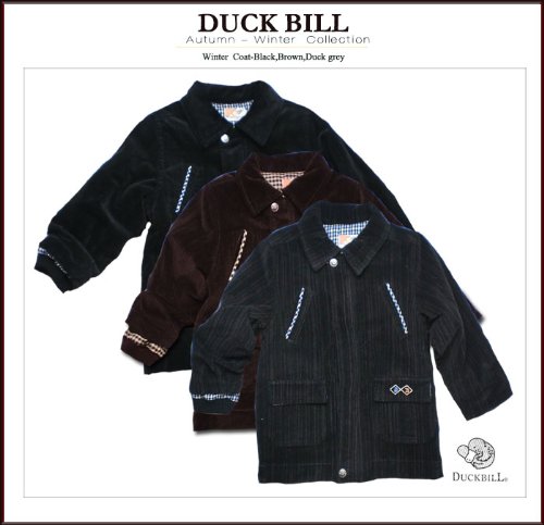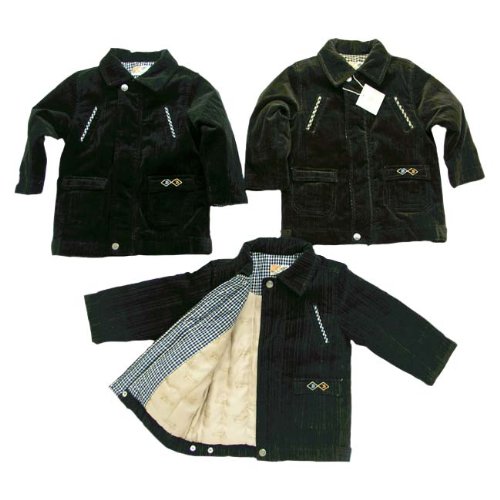 小さいのに機能的!冬にピッタリのコーデュロイショートコートです。細かいストライプのコーデュロイは高級感があり、光の加減で見える表情も豊か!ジャケットの裏地は可愛いカモノハシ君の生地とチェックの生地の組み合わせ。タップリの中綿が入っているので暖かさバツグンです!袖は、袖口の途中にリブがあるので寒さを防いでくれます。前空きはファスナーとボタンのダブルブロック。襟にも綿が入っています♪背中に刺繍されたシンプルなカモノハシ君も可愛いですよv表地:コットン100% 裏地:ポリエステル100% トリム:ポリエステル100%