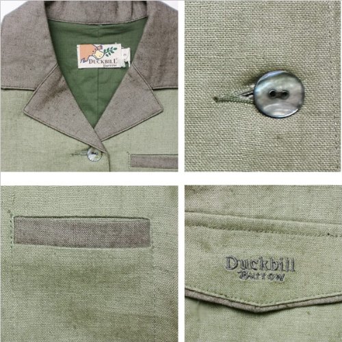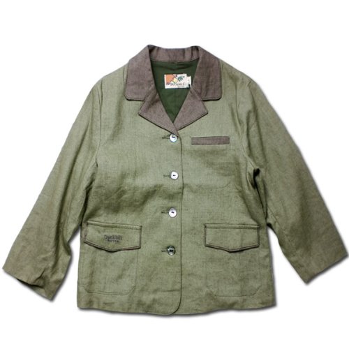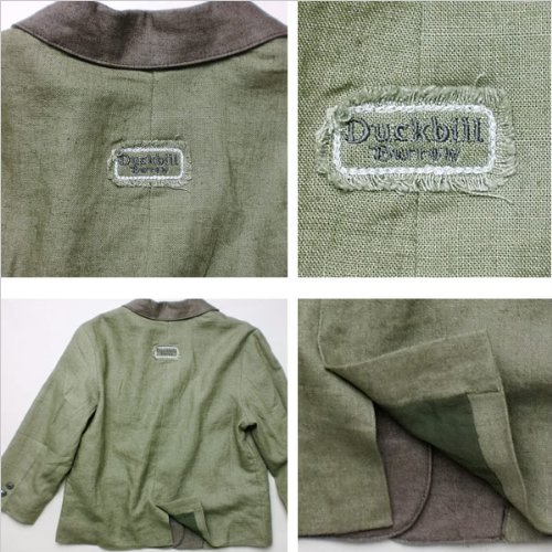 英国紳士 フォーマル に映える天然貝殻ボタン贅沢に使用した 麻混 テーラードジャケット(濠Du)グリーン 110cm