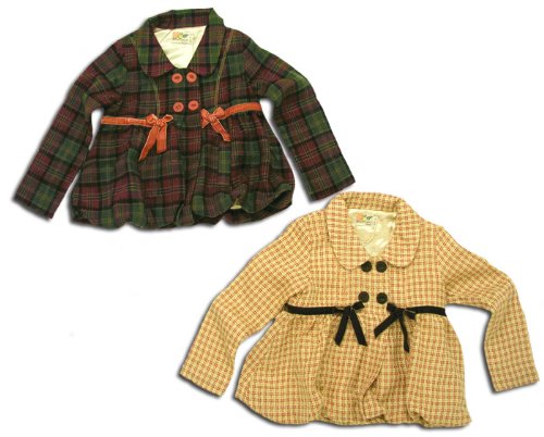 短丈 ウール混のかわいらしいチェック柄のダブルボタンジャケット(濠Du) バーガンディ 110cm(上)
