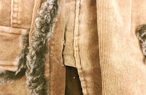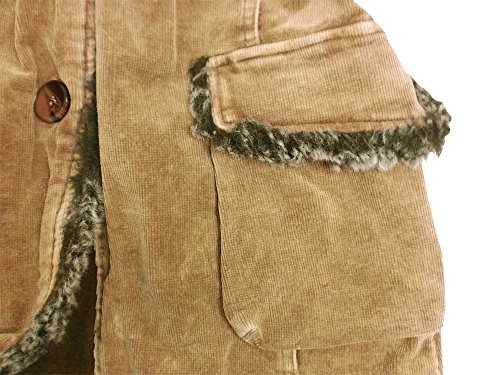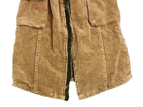 お尻まですっぽり覆って暖かいロングコートです。襟と袖口にボリュームたっぷりのファーが付いていて、ポカポカ暖か!ヴィンテージ加工の色ムラがございますが、商品独特の雰囲気をお楽しみ下さい。 裏地はフリースのような生地になっているので、中綿がなくても暖かいです。前はウエスト下くらいまでボタンが付いているので、動きやすさも重視。大きめのポケットも嬉しいポイント!装飾はシンプルに胸元のロゴタグのみです。素材:表地:コットン100% 裏地:ポリエステル100%