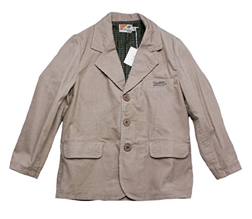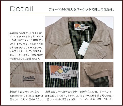 今冬流行テイストのコーデュロイジャケット。子供服ブランドのこだわり上質な綿素材を使用。子供服ですが高級紳士服と同じの仕立て。表地はしっかりと厚手の生地でとっても暖か。裏地にはカラフルなグリーンのコットン生地を使用しています。コーデュロイの毛下の生地に薄茶っぽい色が付いているので、角度によってはダメージ加工に見えてカッコイイです。胸のポケットにあるダックビルのブランドロゴもシンプルでおしゃれ。秋冬物。素材:表地:コットン100%で、 裏地:コットン100%です。