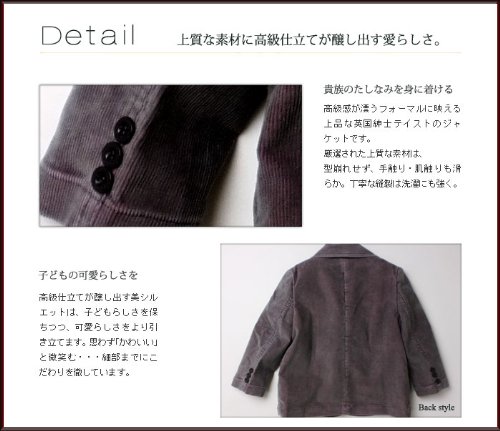 取り外し可能ベスト付き!可愛い正統派英国紳士コーデュロイジャケット(濠Du) グレー/ピンク 110cm
