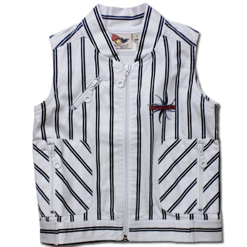 ちょっぴりアウトドア派のファスナー付きおしゃれなベスト(濠Du) ホワイトストライプ 95cm