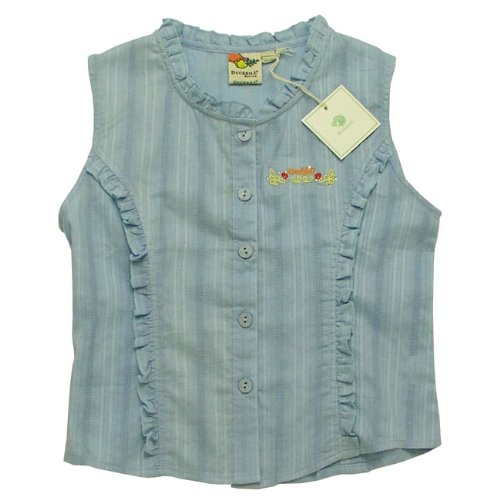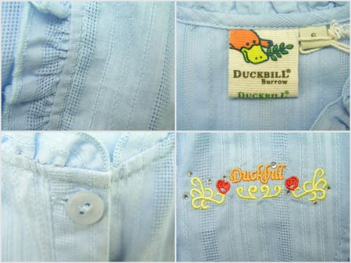 ふんわりとしたロマンティックなベストです。胸元にあしらわれたDuckbillの刺繍とラインストーンが可愛らしく光ります。ボタンやフリルなど、全て同色でデザインされた上品な仕上がりです。前後と首周りのフリルがお嬢様をさらに可愛らしく演出♪コットン100%で肌触りも優しく、ストライプ状にメッシュ加工が施されているの薄手の生地なので涼しく過ごすことができます。春夏物。素材:コットン100%