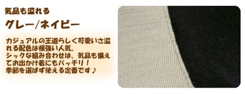 Mゾーン シンプル刺繍の薄手トレーナー(濠Du)グレー/ネイビー95cm(下)