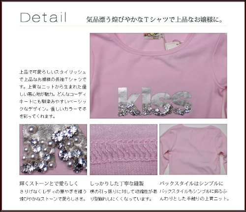 プリンセスサラ 気品溢れる煌びやかなラインストーン入り厚手カットソー/長袖Tシャツ(濠Du)ピンク110cm