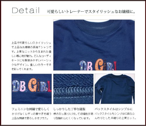 気品溢れる刺繍入りフェミニンなトレーナー(濠Du)ブルー110cm