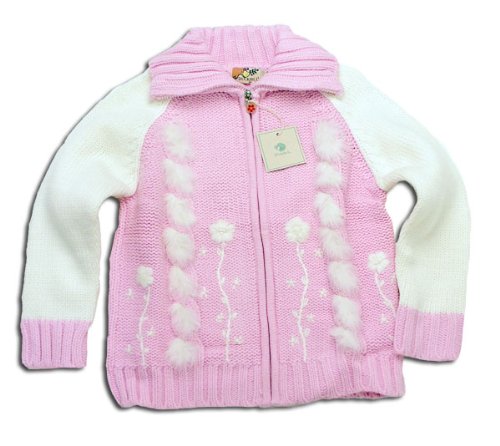 冬に嬉しいしっかり厚手、ぎっしり編まれたニットジャケットです。ポカポカ暖かい生地はコットン65%。チクチク感がないので肌にやさしい。ジップアップなので着脱も楽々♪ジッパーチャームかお花の形になっていて可愛いですよ♪前身ごろすそ上から、肩まで模様編みをし、うさぎさんのしっぽみたい暖かな毛をあしらっています。そして、キュートなお花の刺しゅうが施され。どんなお洋服にも合わせやすいデザインになっています。襟・袖口・裾はリブ編みになっているのでぴったりフィットします。素材:コットン65%、ポリエステル35%