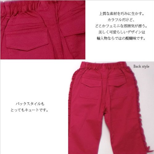 雛菊 サイドフリルの鮮やかパンツ【ピンク・ホワイト】(濠Du) ピンク 100cm(左)