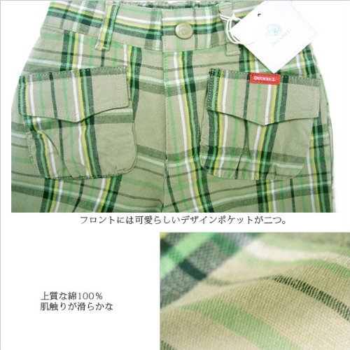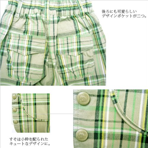 キュートさとカッコ良さを欲張りたい女の子必見!落ち着いたチェック柄の生地を使ったデザインパンツです。ポケットは前後合わせて4つ。前ポケットは角丸スタイルにギャザーを寄せた立体感のあるデザイン。すそ辺には、甘いカーブを描いた切り替え、それに沿ってバイヤスを重ね。ウエストは半ゴムになっていて、スナップボタンで留めているので着脱も楽です。普段着からちょっとおでかけまで、幅広く使えちゃうのも嬉しいです。 秋冬物。素材:コットン(綿)100%です。