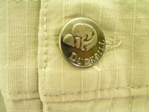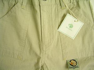 メッシュ生地のような模様はオシャレな程よい厚さのパンツです。膝に切り返しの入った、スッキリとしたデザインで、ポケットは前後合わせて4つ。前ポケットはシンプルスタイルでダックビルのロゴタグが付いています。後ろポケットには角丸スタイル、左膝の切り替えしラインの上にはダックビルのロゴ刺繍入り♪ウエストは半ゴムなので履き心地は快適です!春秋物。素材:コットン100%