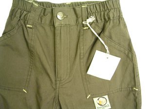 メッシュ生地のような模様はオシャレな程よい厚さのパンツです。膝に切り返しの入った、スッキリとしたデザインで、ポケットは前後合わせて4つ。前ポケットはシンプルスタイルでダックビルのロゴタグが付いています。後ろポケットには角丸スタイル、左膝の切り替えしラインの上にはダックビルのロゴ刺繍入り♪ウエストは半ゴムなので履き心地は快適です!春秋物。素材:コットン100%
